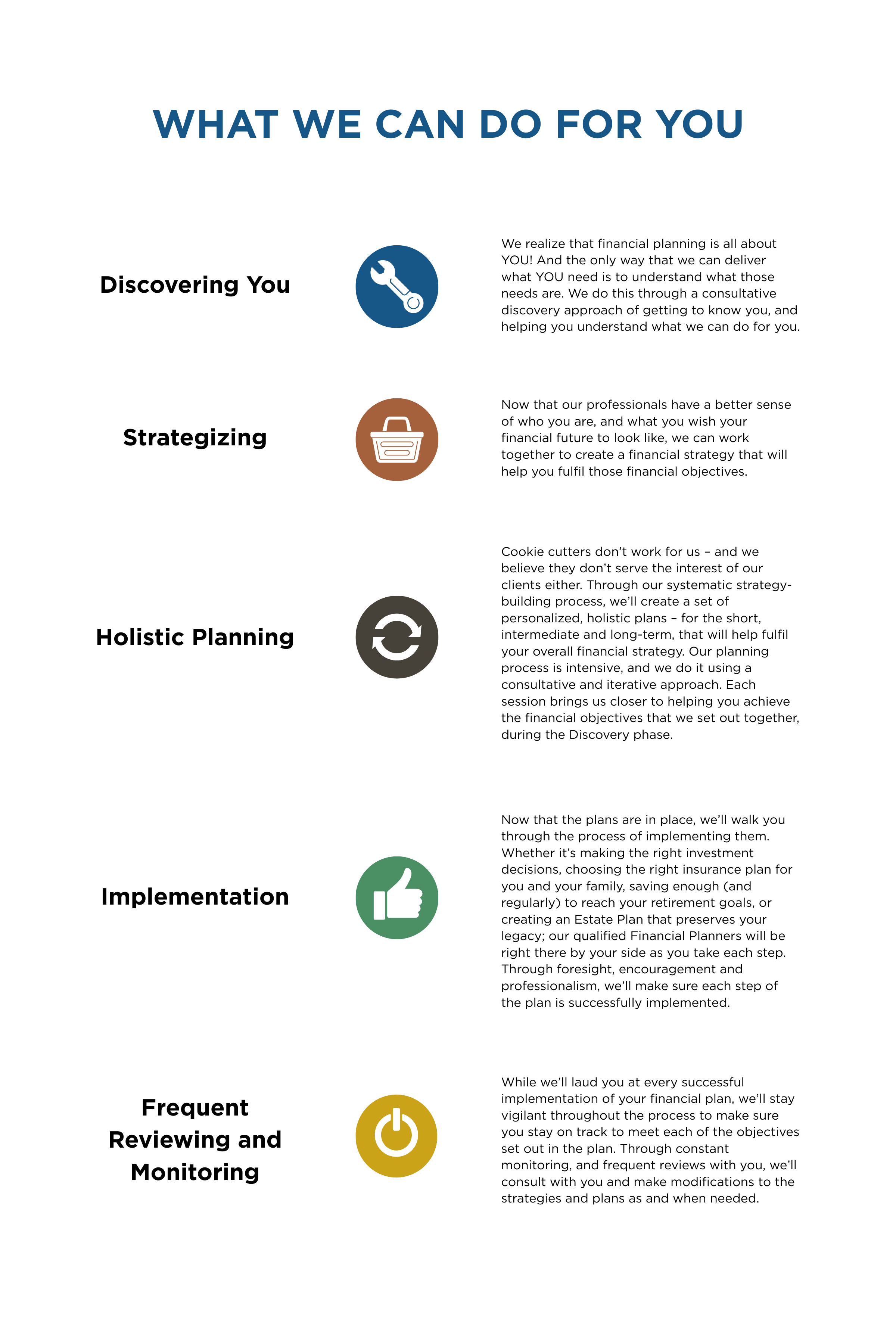A well-grounded financial plan is essential for anyone who wishes to accomplish specific financial objectives. Whether it be the idea of owning your home (sooner, rather than later!), making sure your children’s education is well funded, or ensuring a smooth and stress-free retirement; all of these seemingly disparate components come together under a unified financial plan.